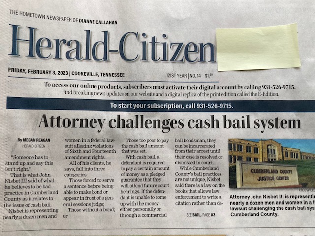 Federal lawsuit challenging how bail is set in Cumberland County, TN